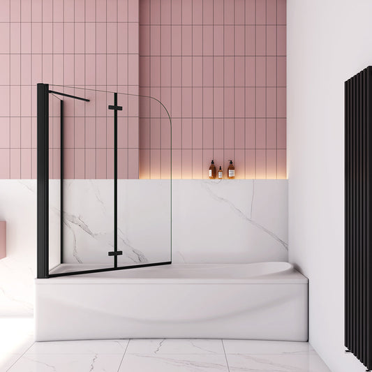 Duschwand Badewannenfaltwand+Seitenwand Duschabtrennung 6mm Glas Schwarz