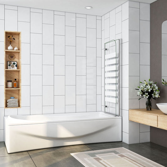 Duschabtrennung Badewannenaufsatz faltbar 2-teilig mit Seitenwand H.140 cm 6mm NANO Glas