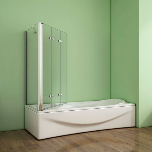 Faltbare Duschkabine Badewannenaufsatz Dreiteilig 130x140 cm 6mm NANO Glas