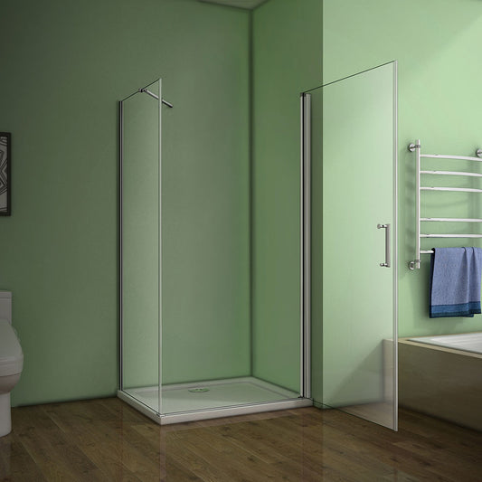 Drehtür Nischentür Dusche | Material: Sicherheitsglas, Aluminium, Glas | Glasstärke: 5/6/8 mm | Höhe: 180 / 185 / 195 / 200 cm