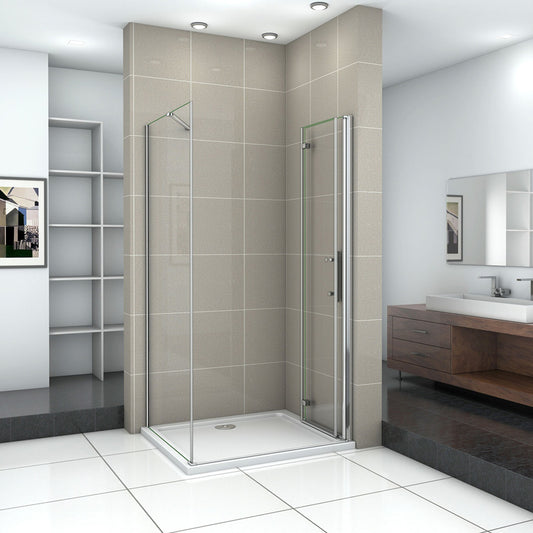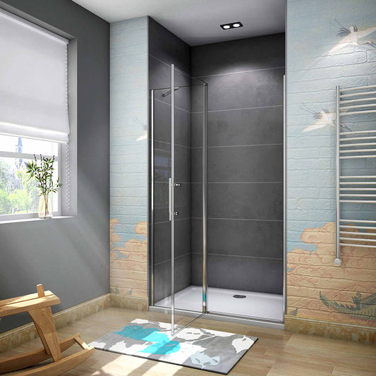 H.185/195cm Nischentür Duschabtrennung Schwingtür Falttür Duschwand Dusche 6mm Nano Glas