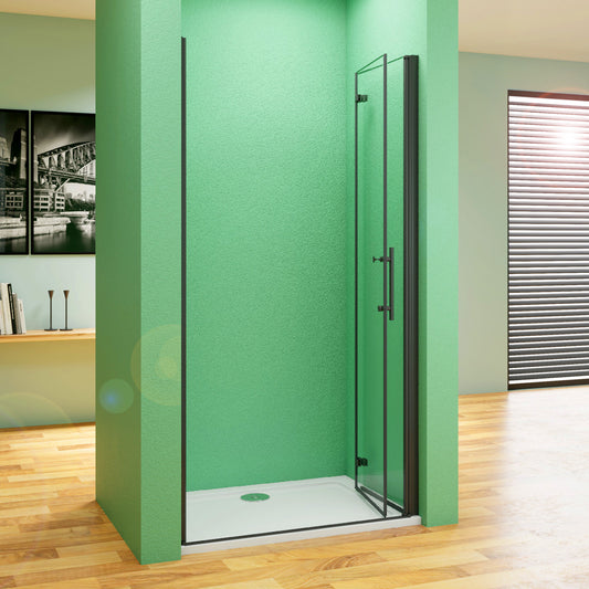 Faltbar+drehbar Duschabtrennung Drehfalttür Nischentür Schwingtür Falttür Duschwand 6mm NANO Glas Schwarz H.195cm