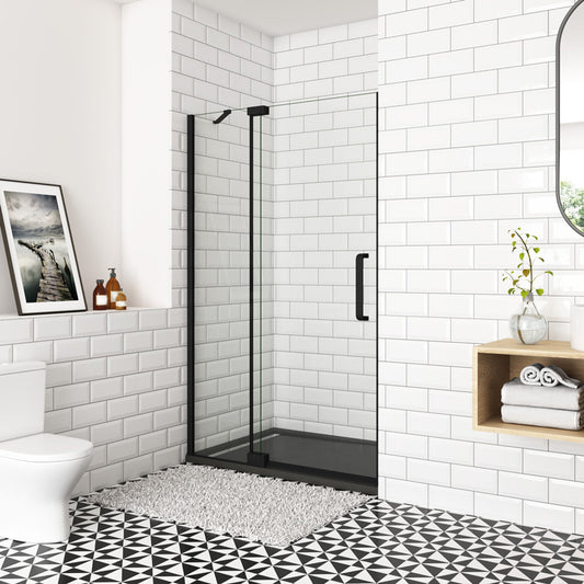 Duschtür Drehtür Duschkabine Glastür dusche NANO Glas H.185cm Schwarz