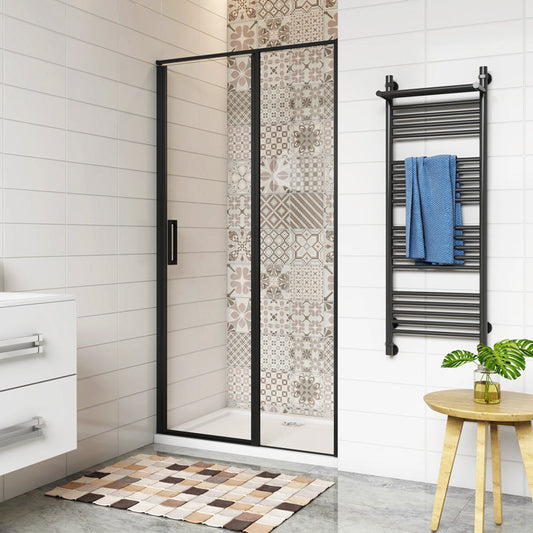 Drehtür + Festteil für Nische Dusche 100 x H.185 cm NANO Glas schwarz