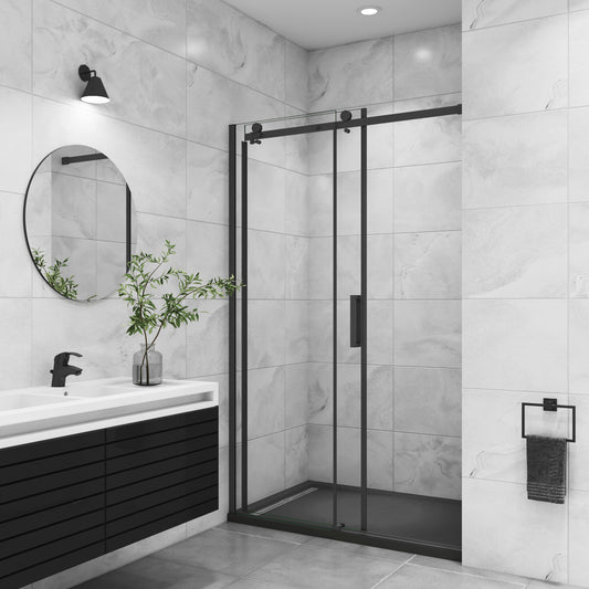 Duschkabine Schiebetür für Nische 140 cm 8mm NANO Glas H.200 cm Schwarz