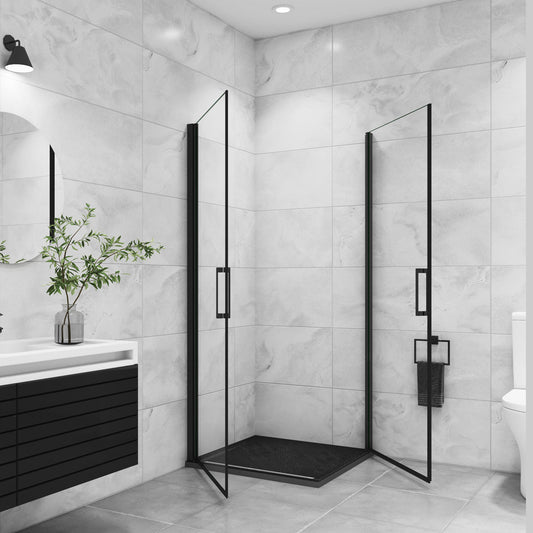 Eckdusche Duschkabine Quadrat Eckeinstieg | Drehtür | ESG Sicherheitsglas | NANO Glas | Glasstärke: 8mm | Höhe: 200cm | schwarz