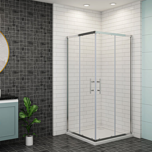 Duschkabine Eckdusche Eckeinstieg Schiebetür Dusche 90x90 cm NANO Glas H.185cm