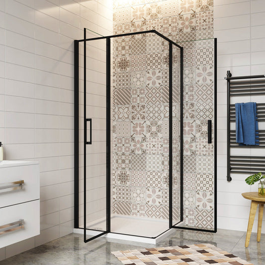 Duschkabine Eckeinstieg Dusche 120x120 cm Duschabtrennung Falttür NANO Glas 195cm Schwarz
