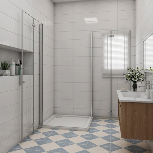 Duschkabine Eckeinstieg Dusche 76x76 cm Duschabtrennung Falttür NANO Glas 195cm