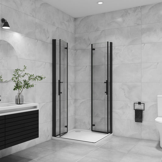 Duschkabine Eckeinstieg Dusche 76x76 cm Duschabtrennung Falttür NANO Glas 195cm Schwarz