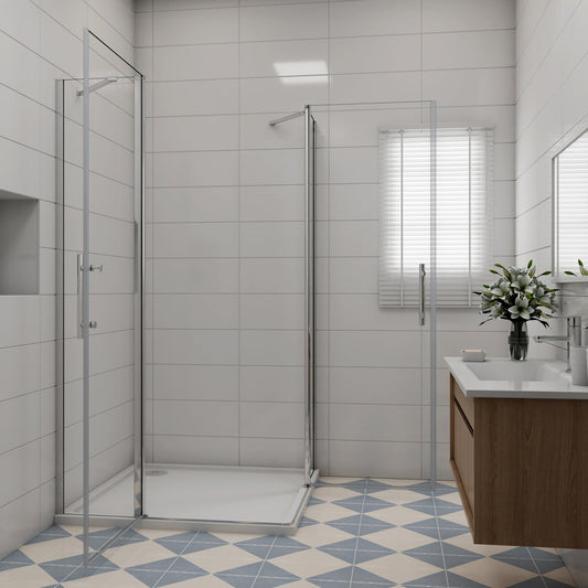 Eckeinstieg Duschkabine Dusche | Material: Sicherheitsglas, Aluminium, Glas | Höhe: 180 / 185 / 195 / 200 cm | Duschtür: Falttür / Drehtür / Schiebetür | Größe: 70x70 / 76x76 / 80x80 / 90x90 / 100x100 / 110x110 / 120x120 cm