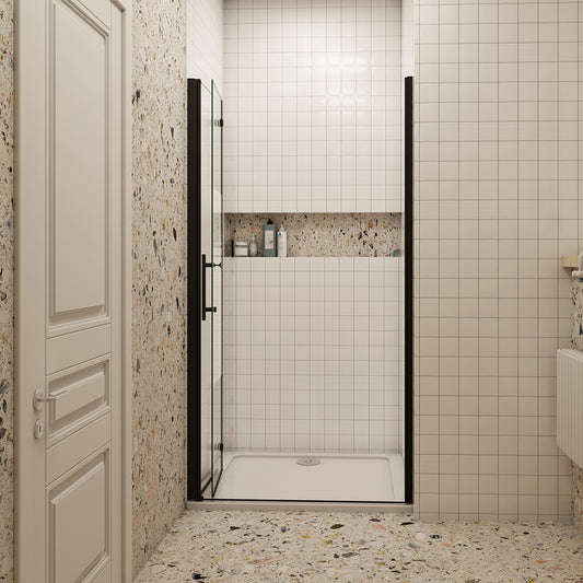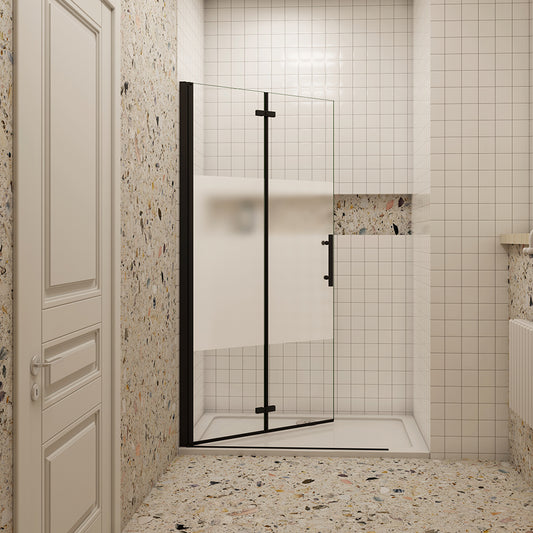 Faltbar+drehbar Duschabtrennung Drehfalttür Nischentür Schwingtür NANO Glas Schwarz H.195cm