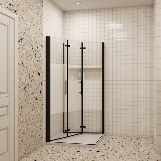 Duschkabine Duschabtrennung Eckeinstieg Falttür Schwarz 6mm Glas mit Schutzfolie
