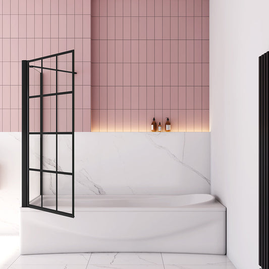 Duschwand Badewannenfaltwand+Seitenwand Duschabtrennung 6mm Glas Schwarz