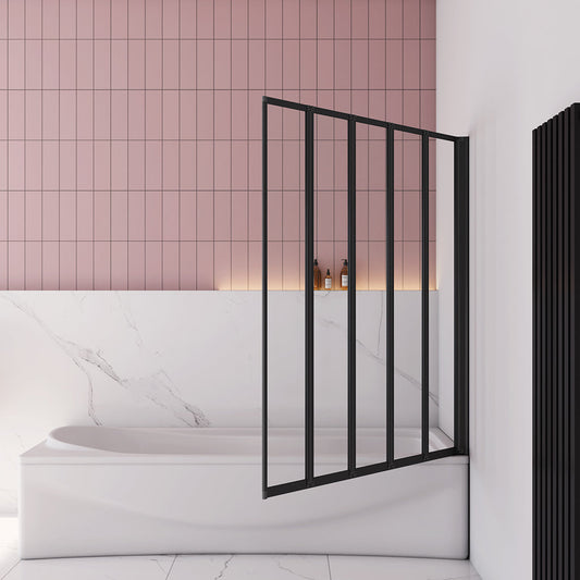 Duschabtrennung Badewannenfaltwand 120x140 cm 5-teilig Faltwand Sicherheitsglas Schwarz