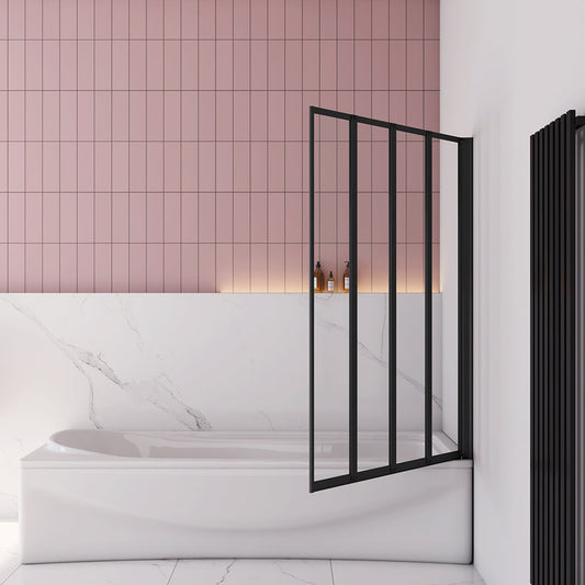 Duschabtrennung Badewannenfaltwand H.140 cm 4-teilig Faltwand Sicherheitsglas Schwarz