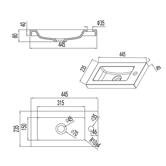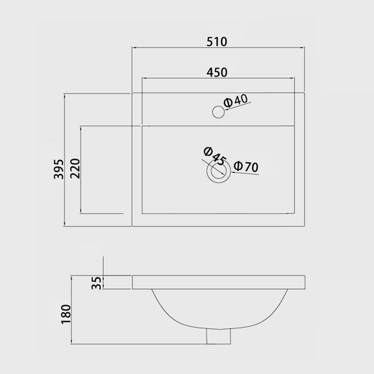 Waschbecken Kunststein Waschtisch Einbauwaschbecken 44.5x23.5x8cm Weiß