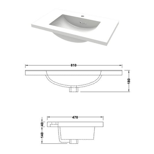 Waschbecken Kunststein Waschtisch Einbauwaschbecken 81x47 cm Weiß
