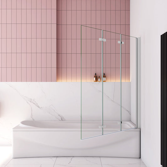 130x140 cm Badewannenaufsatz Badewannenfaltwand 3-teilig 6mm Glas Faltwand Duschwand