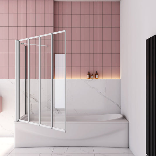Duschabtrennung Badewannenfaltwand 4-teilig Faltwand+Seitenwand H.140 cm Glas Dusche