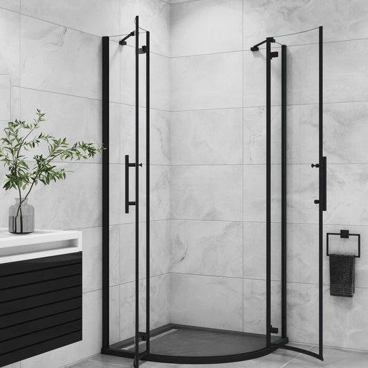 Duschkabine Viertelkreis Duschabtrennung Runddusche Pendeltüren NANO Glas H.195cm Schwarz