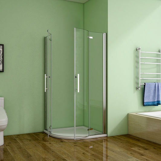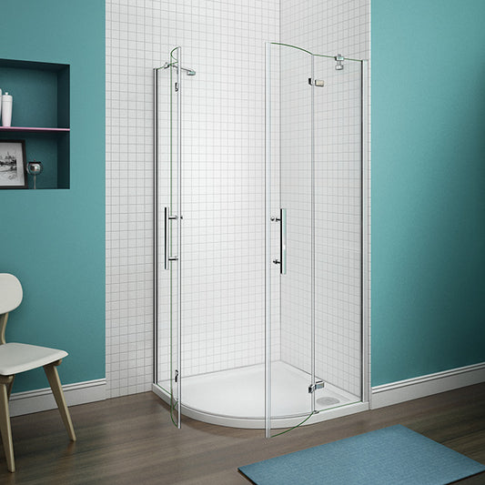 Duschkabine Viertelkreis Duschabtrennung Glas Runddusche Pendeltüren NANO ESG Rahmenlos H.195cm