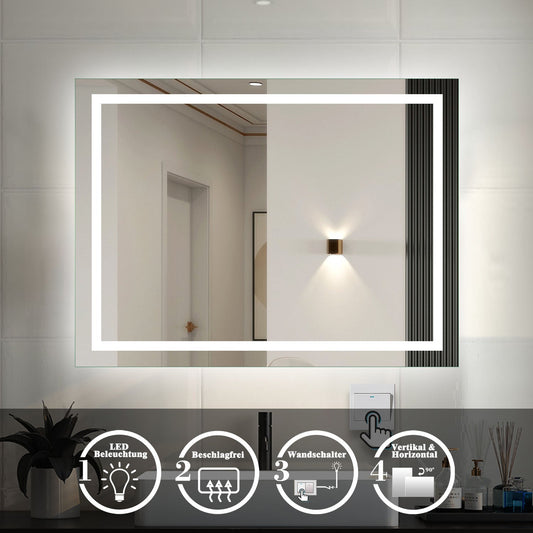 Badspiegel mit LED Beleuchtung Badezimmerspiegel 80x60 cm Wandspiegel Anti-Beschlag