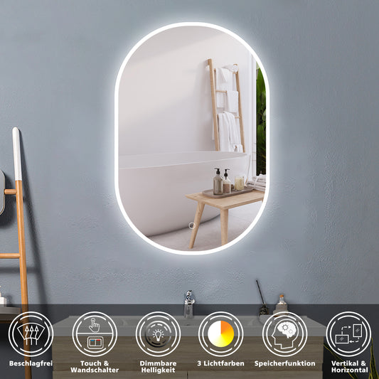Oval LED Badezimmerspiegel Badspiegel Wandspiegel mit Beleuchtung Beschlagfrei