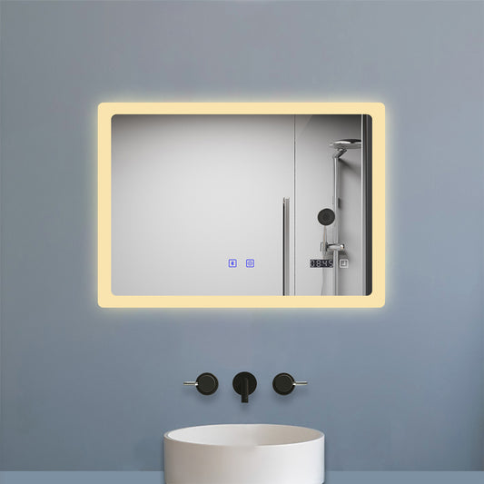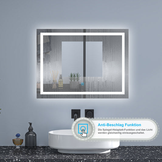 Badspiegel 80x60cm Touch Beschlagfrei energiesparend Digital-Uhr