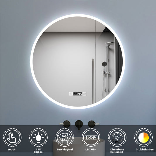 Badspiegel Rund Badezimmerspiegel Wandspiegel mit LED Beleuchtung Beschlagfrei Ø 80 cm