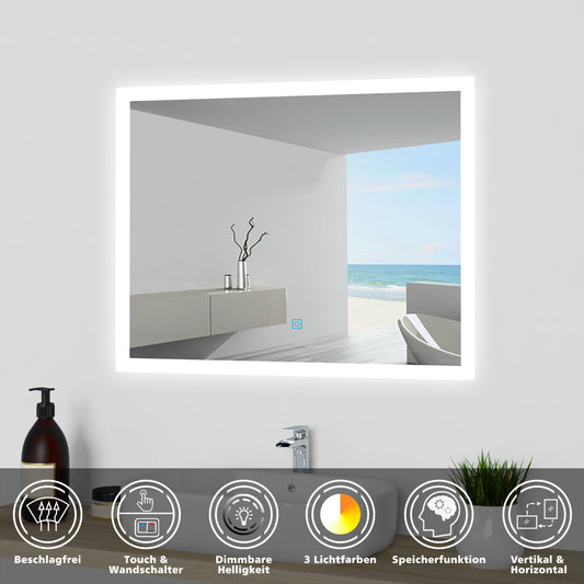 LED-Lichtspiegel Badspiegel 3 Lichtfarbe Wand/Touch Memory Beschlagfrei