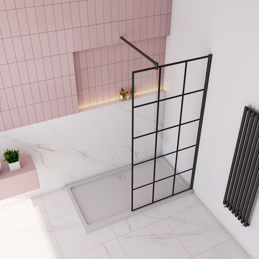 Walk In 90 cm Duschkabine aus 8mm Glas H.200 cm Schwarz Dusche