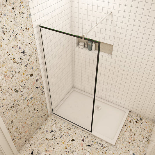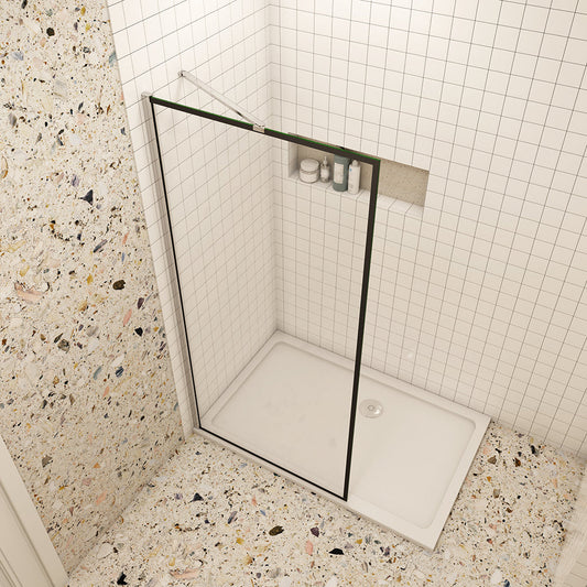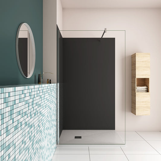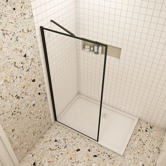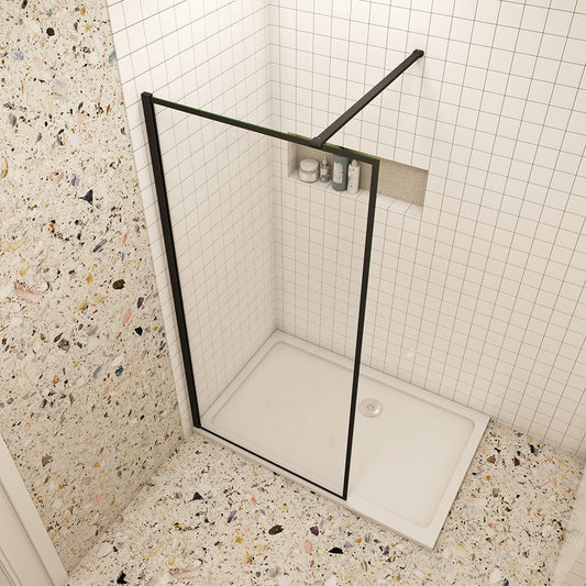 Duschabtrennung Walk In Duschwand 8mm Glas mit Stabilisierungsstange Schwarz