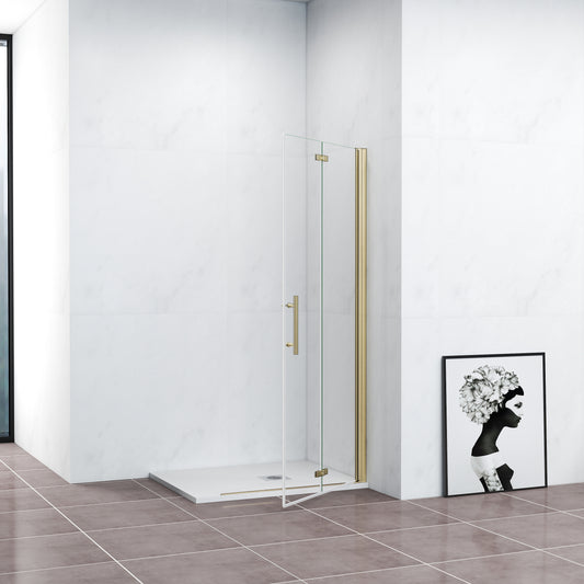 Walk In Duschwand Faltbar+Drehbar Duschabtrennung Duschtür Goldfarben Dusche 116 x H.195 cm NANO Glas