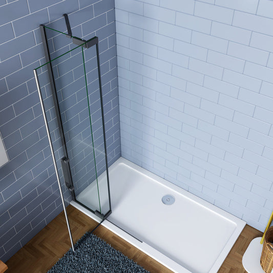 Walk In Duschwand Duschabtrennung Faltbar+Drehbar Duschtür Dusche NANO Glas 116 x H.195 cm Schwarz