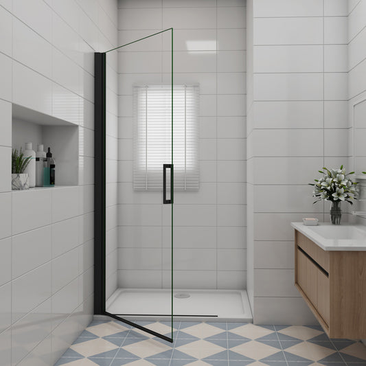 Walk In Duschwand Duschabtrennung Faltbar+Drehbar Duschtür Dusche NANO Glas 96 x H.195 cm Schwarz