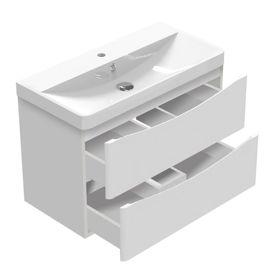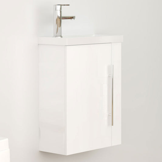 Waschtisch 45 cm Waschbecken mit Unterschrank Gäste WC Badmöbel Set klein Loft Hochglanz Weiß