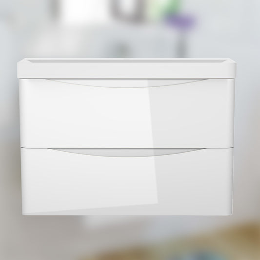 Waschtisch mit Unterschrank Hochglanz Weiß Badmöbel Waschbecken 80 cm