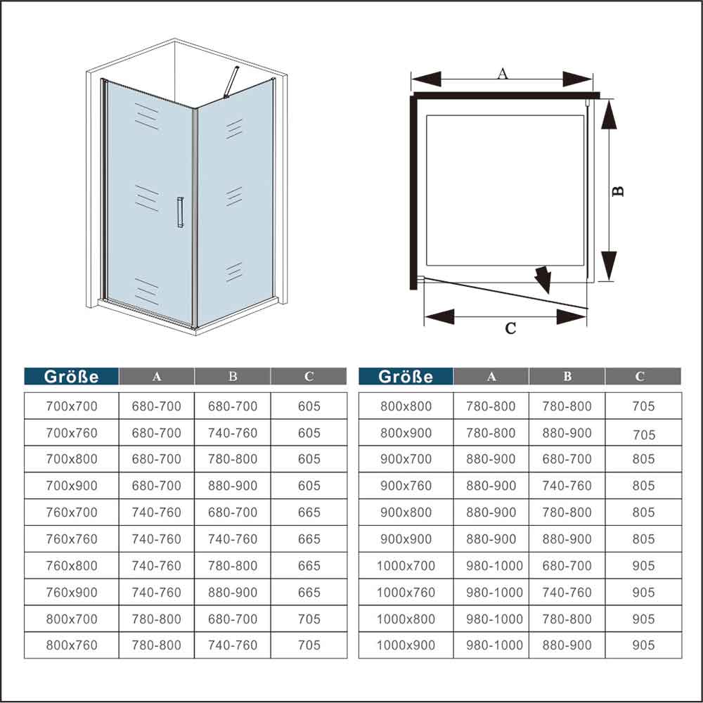 Drehtür mit Seitenwand Duschkabine 80x76 x 185 cm Glas Dusche