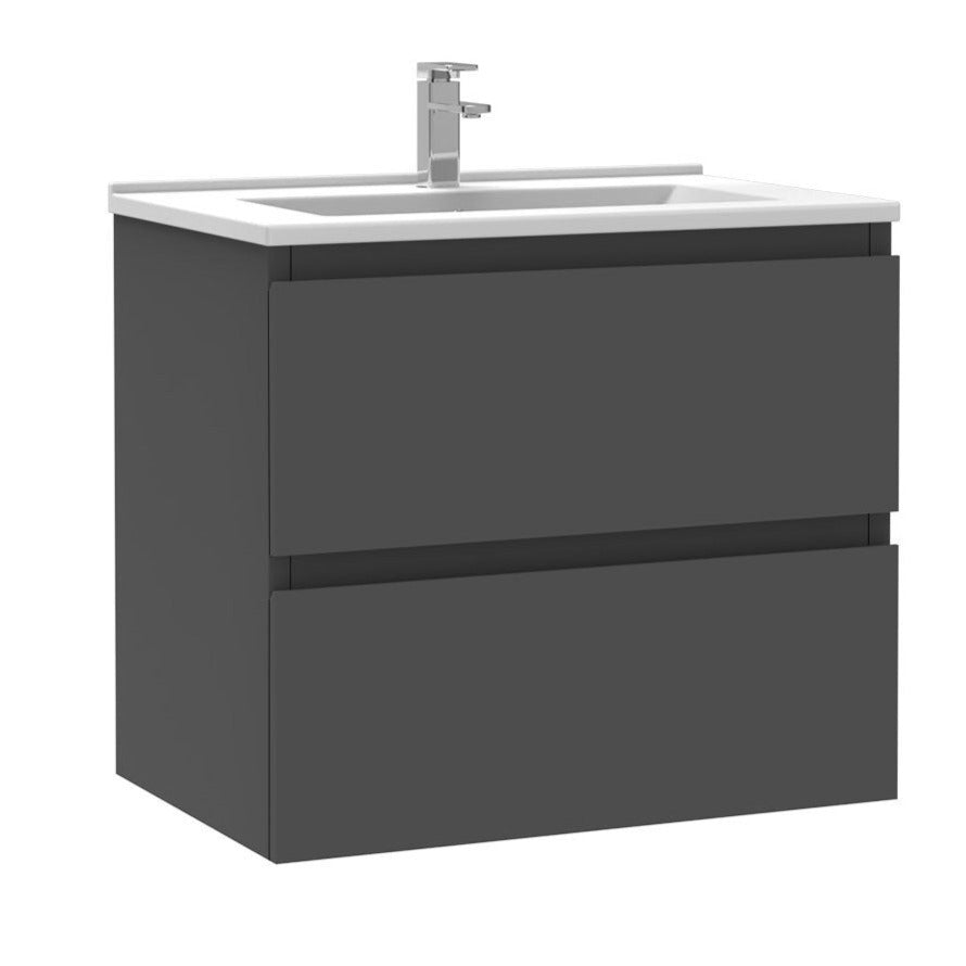 Badmöbel Set 60cm Waschbecken mit Unterschrank Waschtisch Standschrank Anthrazit