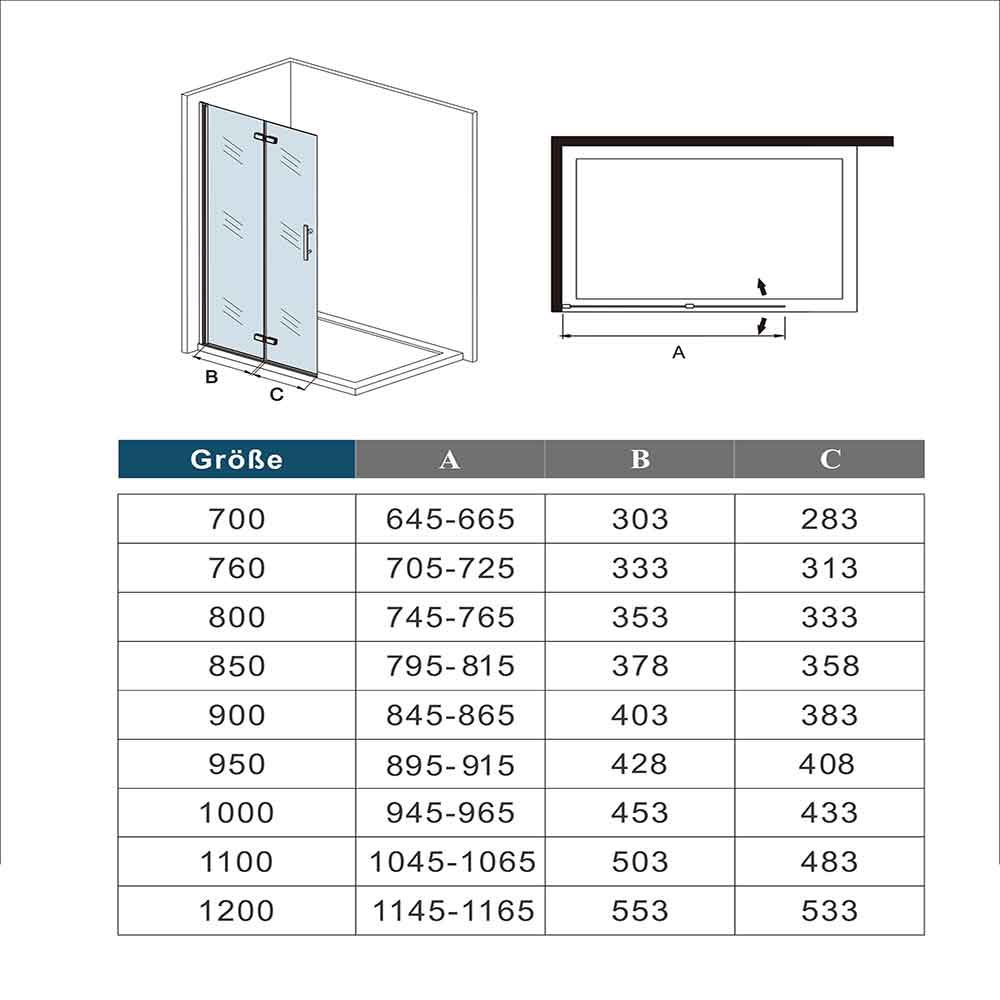 Walk-In Duschwand Faltbar+Drehbar Duschabtrennung Duschtür Dusche 72 x H.195 cm NANO Glas