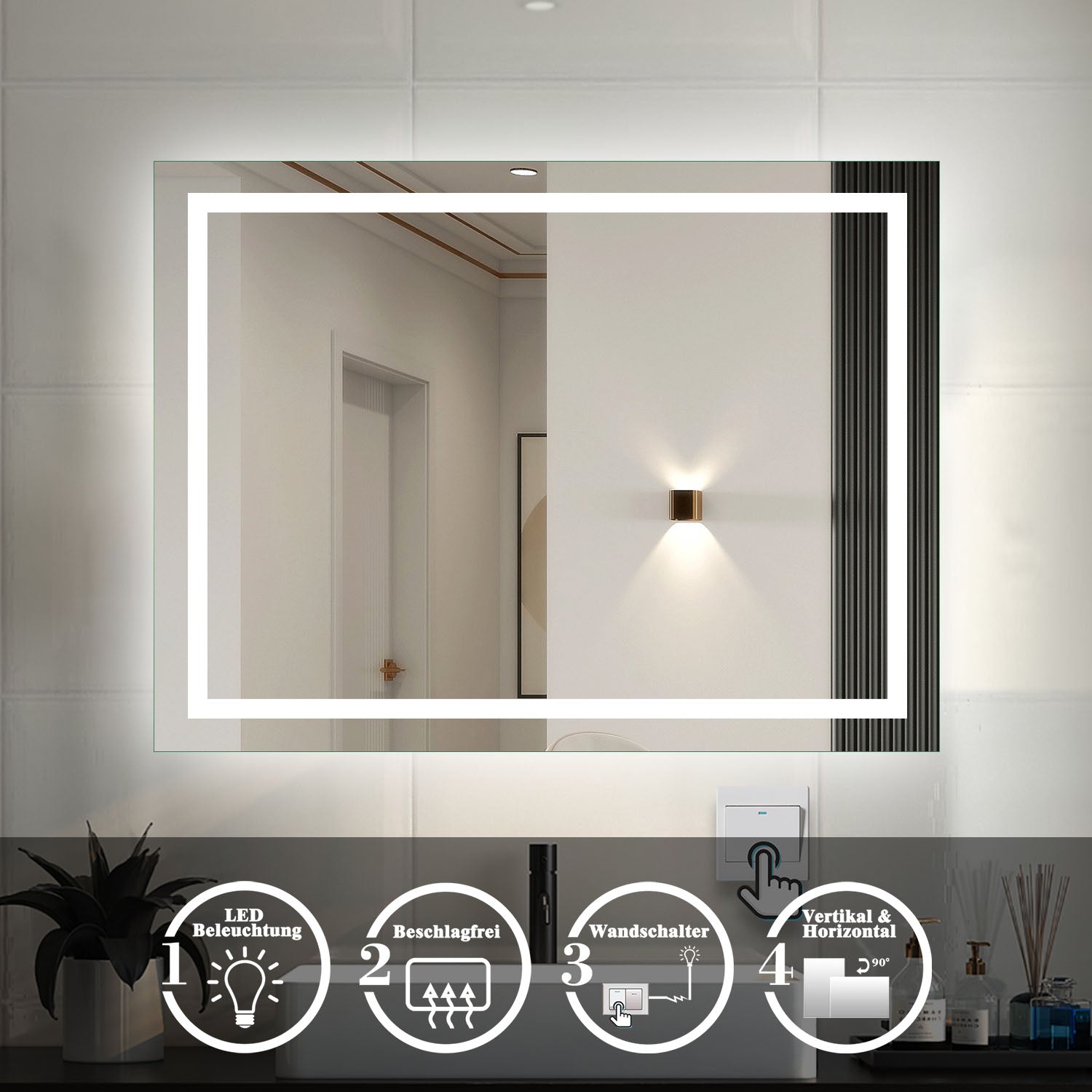 - Multi-Funktional: LED 6000K Beleuchtung, Wandschalter, Beschlagfrei