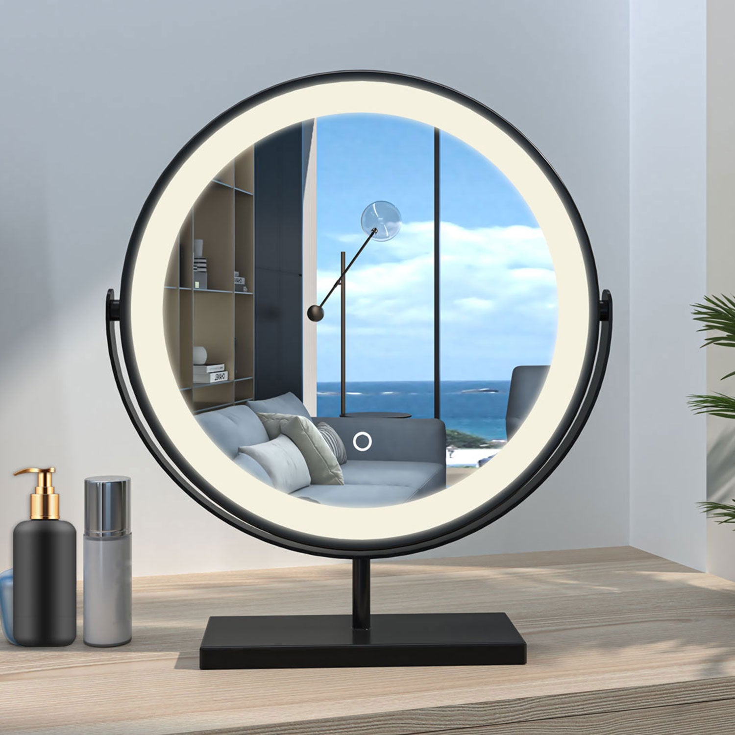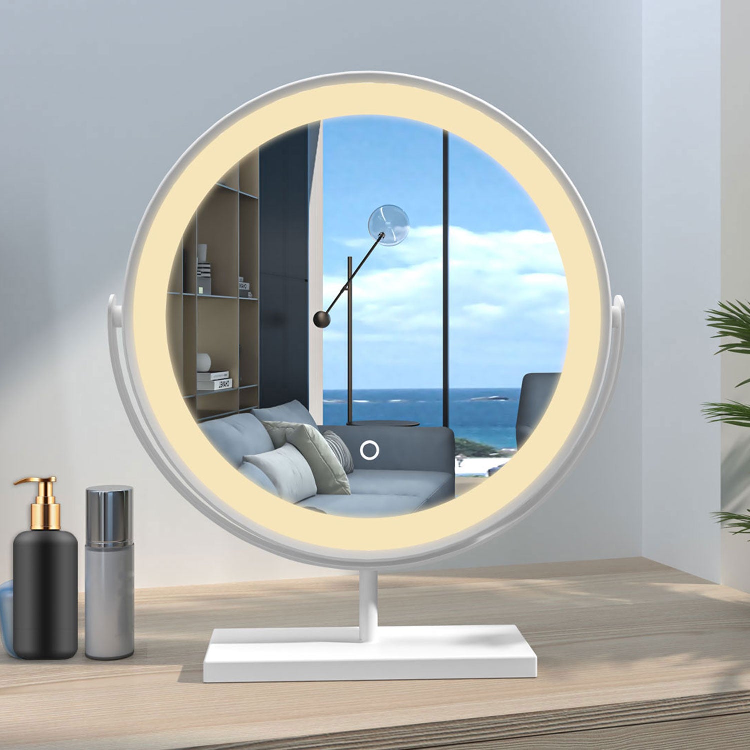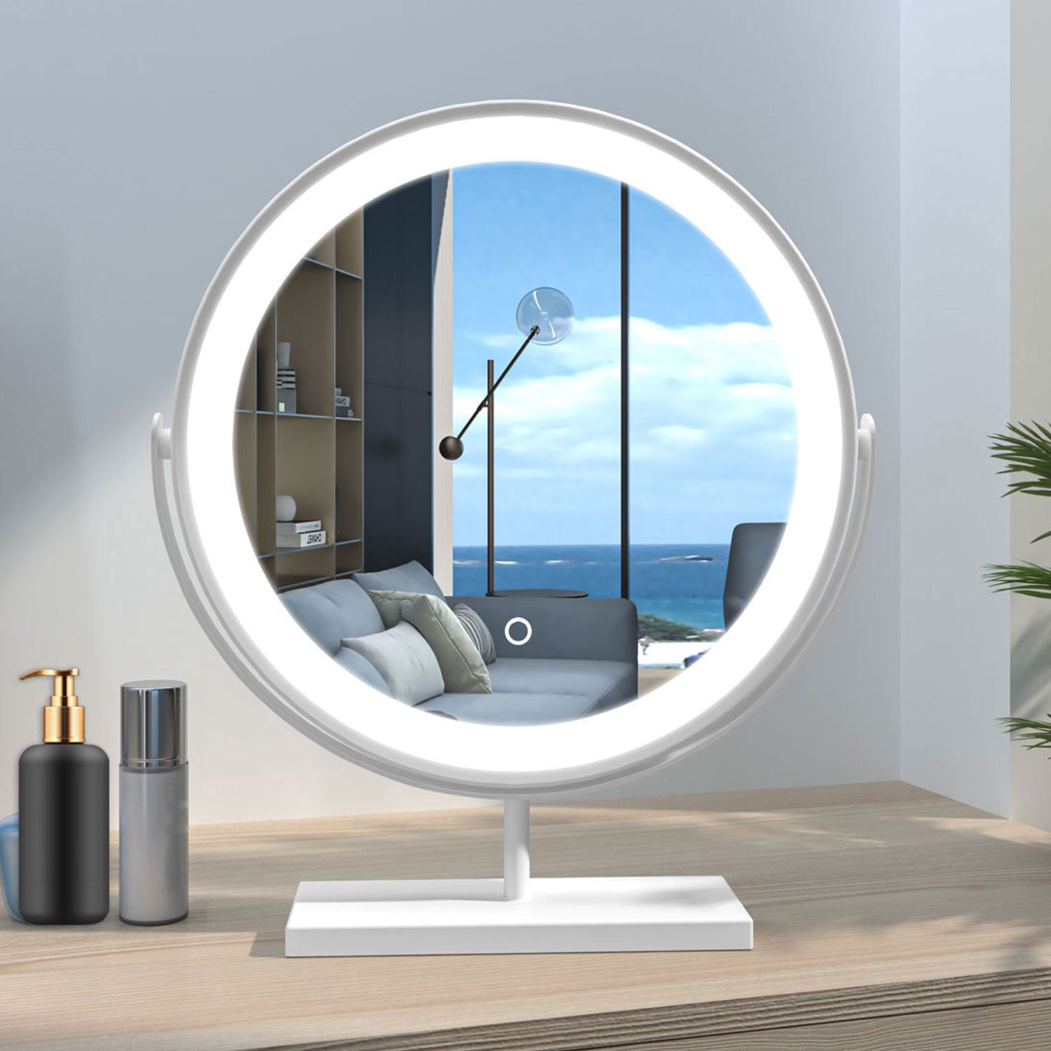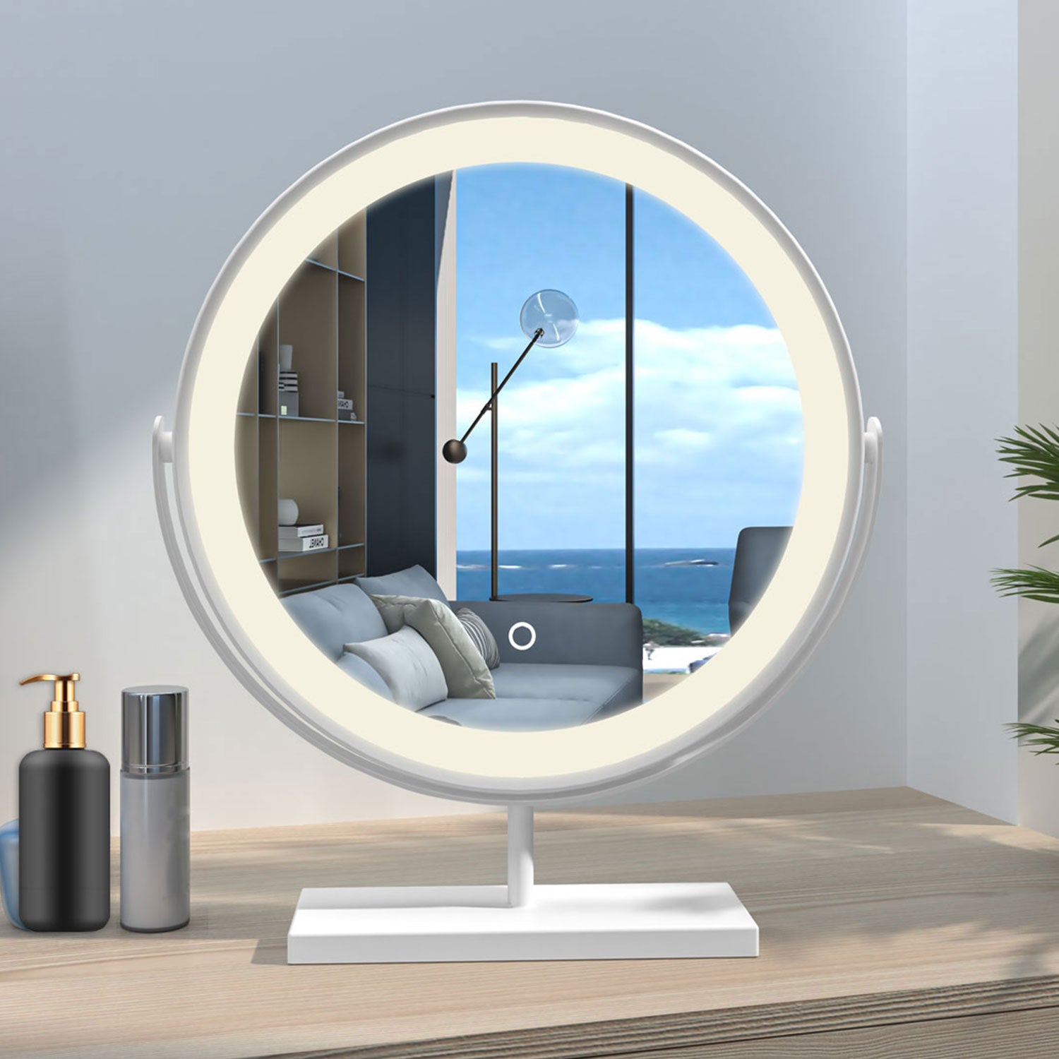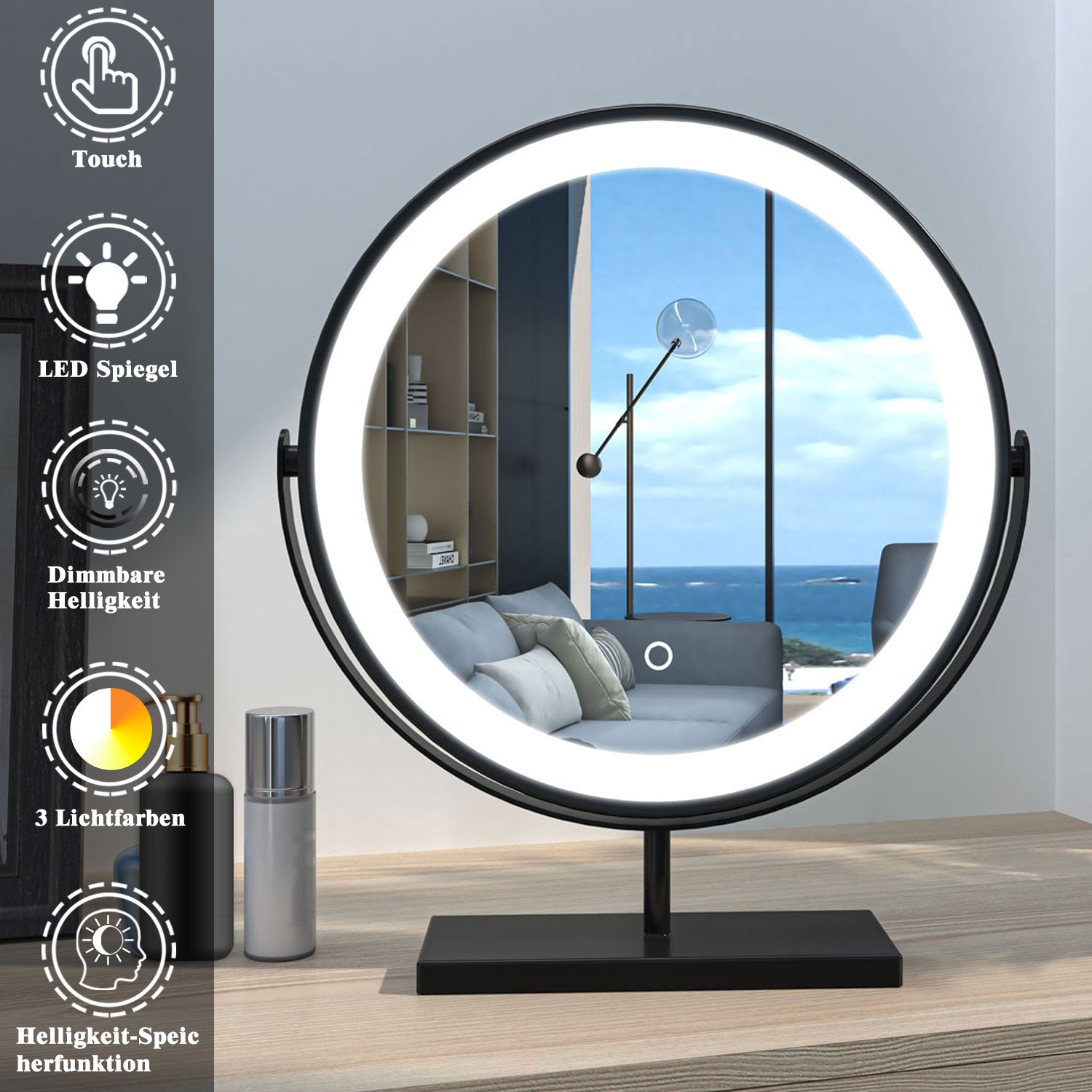Modern Rund Schminkspiegel LED Kosmetikspiegel mit Beleuchtung Tischspiegel