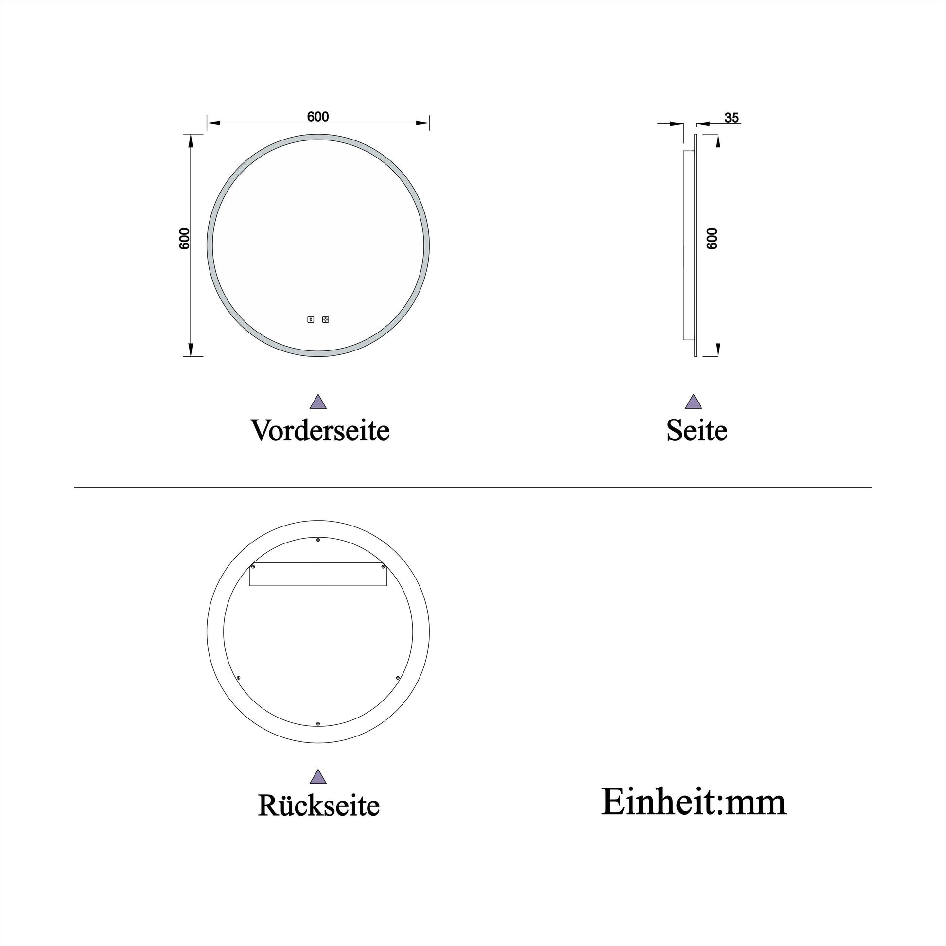 Badspiegel Rund Badezimmerspiegel Wandspiegel mit LED Beleuchtung Beschlagfrei Ø 60 cm