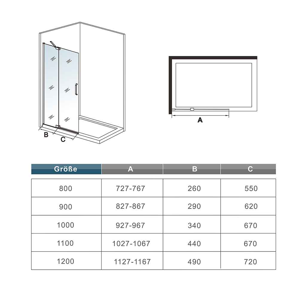 Walk in Dusche Duschwand | NANO Glas | Farbe Profil: chromfarben | Höhe:...