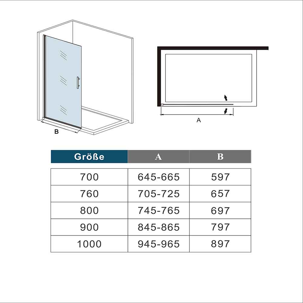 Drehtür Walk In Duschwand Duschtür Dusche Duschabtrennung 96 x H.185 cm NANO Glas