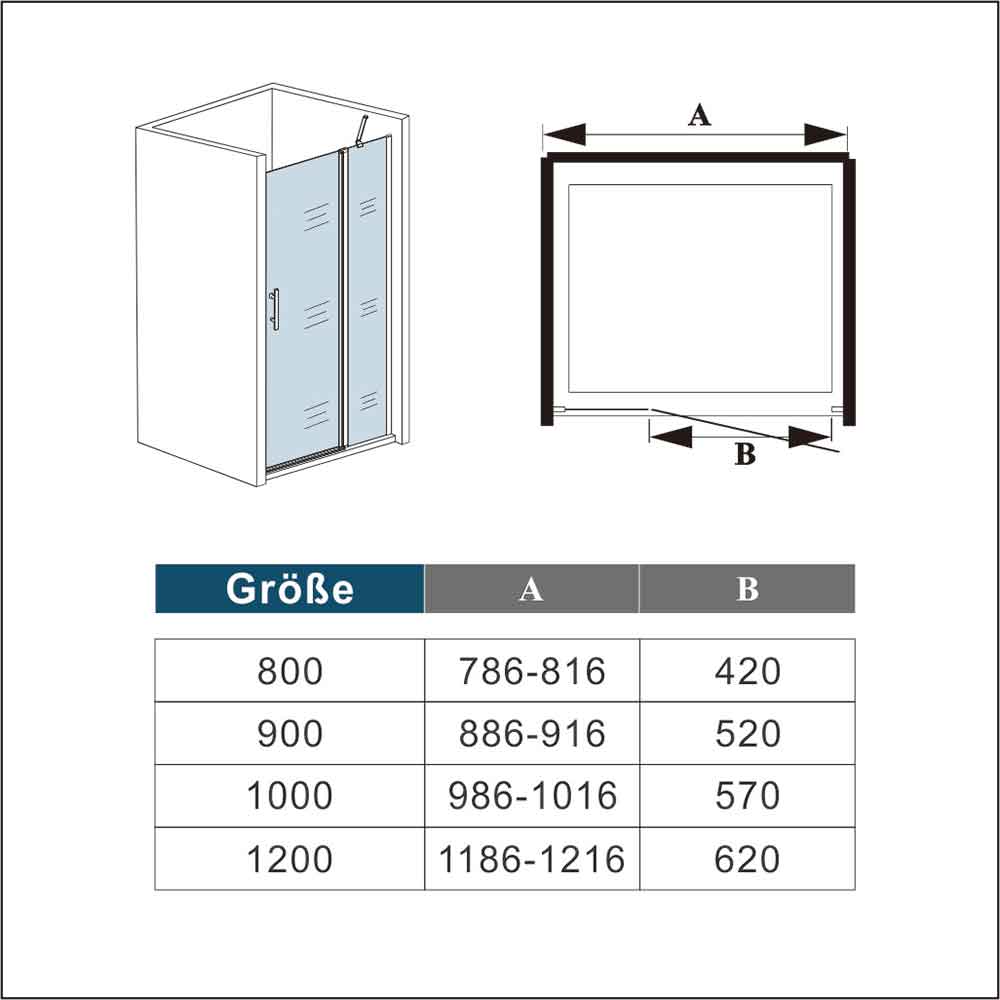 Drehtür Dusche | 6mm NANO Glas | chromfarben | Nischentür | 185 cm/ 195...