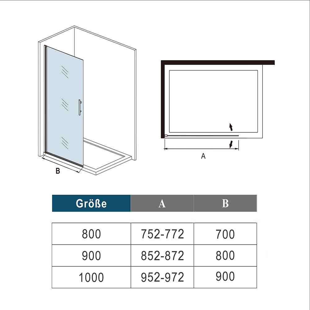 Drehtür Walk In Duschwand Duschtür Dusche Duschabtrennung 96 x H.200 cm NANO Glas